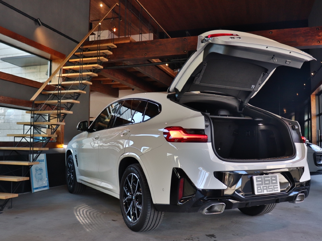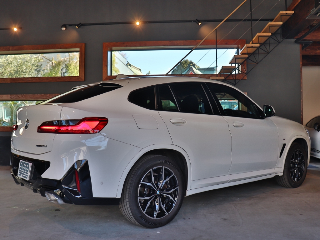 エレガントな特徴のひとつであるクラシックなクーペのフォルムを描くルーフラインは精悍なルックスを特に引き立てる『X4xDrive20d Mスポーツ』が入庫。