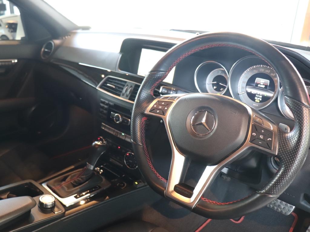 ディーラー車 ワンオーナー 記録簿 スペアキー パドルシフト クルーズコントロール レッドシートベルト ハーフレザースポーツシート メモリー機能付きパワーシート 純正ナビゲーション 地デジ ETC バックカメラ ドライブレコーダー キセノン AMGエアロ AMGトランクリップスポイラー AMG18インチホイール