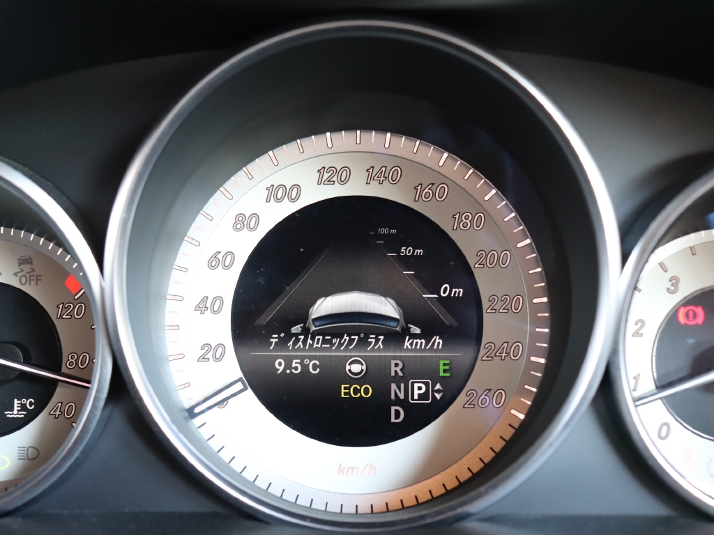 キーレスゴー、パドルシフト、レーダーセーフティ、メモリー機能付きパワーシート、ランバーサポート、シートヒーター、エアスカーフ、純正ナビゲーション、地デジ、ETC、バックカメラ、パークトロニック、ドライブレコーダー、レーダー探知機など装備も充実。