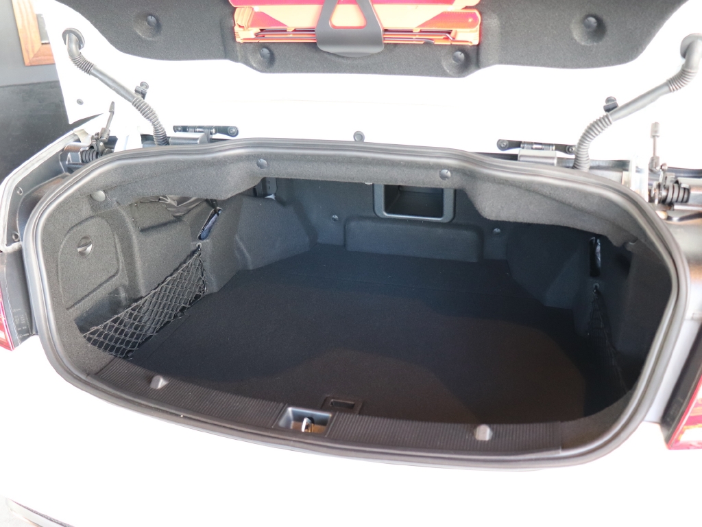 ポーラーホワイトのボディカラーにブラックレザーとブラックソフトトップの組合せがラグジュアリーな1台。