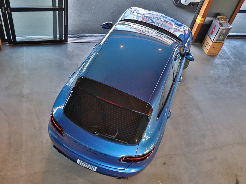 オプションカラーのサファイアブルーMのボディにGTS専用装備付きでコンパクトながらにも迫力のあるスタイリングが魅力的なPorsche『マカン GTS PDK』