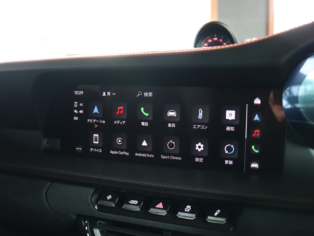 その他にもエントリードライブ、GTスポーツステアリング、ステアリングヒーター、パドルシフト、パワーステアリングプラス、スポーツクロノパッケージ、シートヒーター、純正ナビゲーション、AppleCarPlay、AndroidAuto、、BOSEサウンドシステム、ETC2.0、全周囲カメラ、コーナーセンサー、前後ドライブレコーダー、LEDヘッドランプ、20/21インチホイールなど装備も充実の1台です。