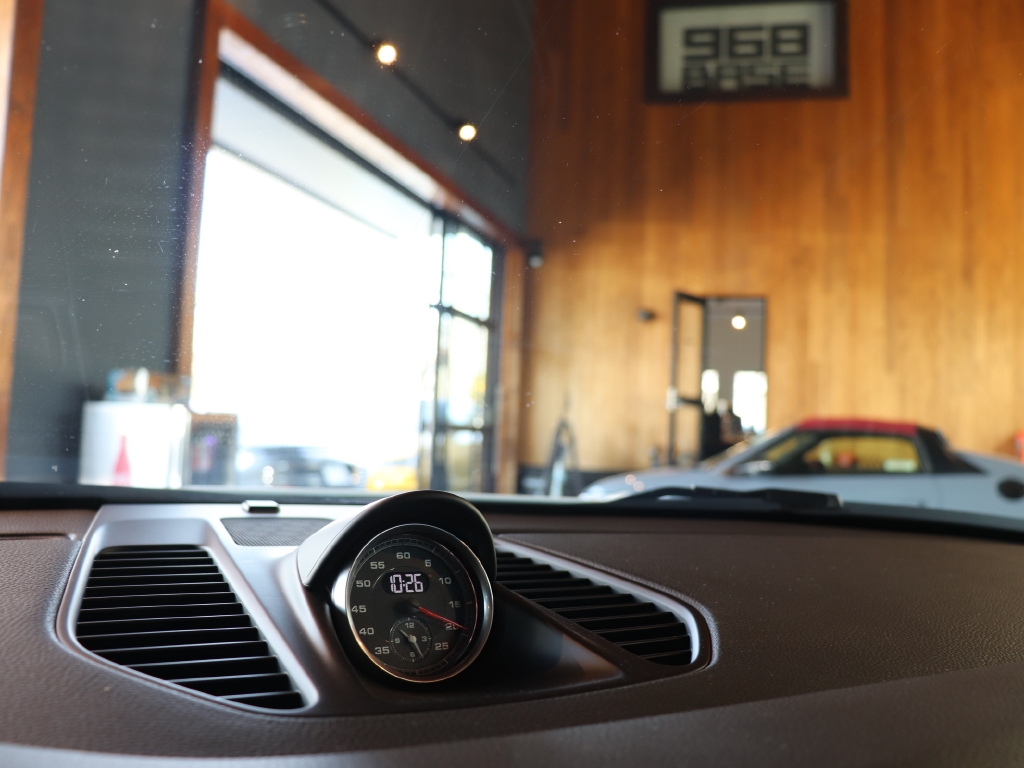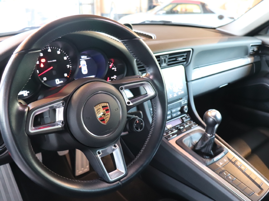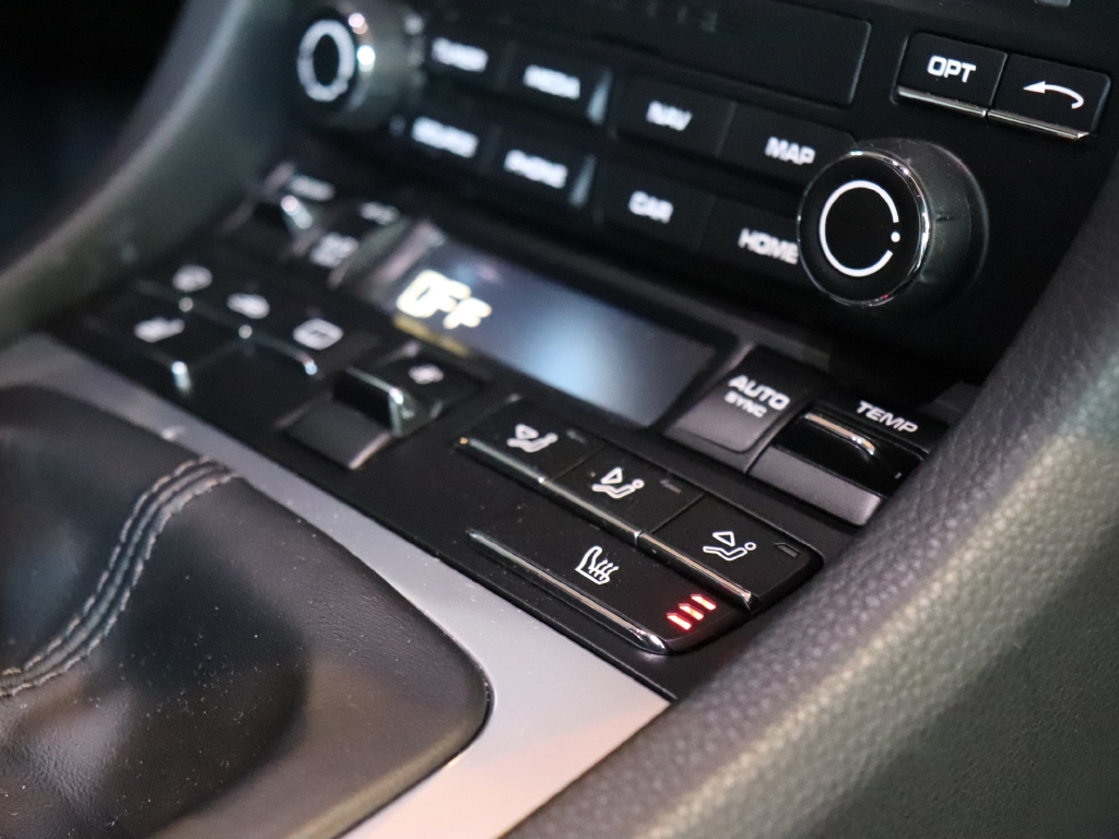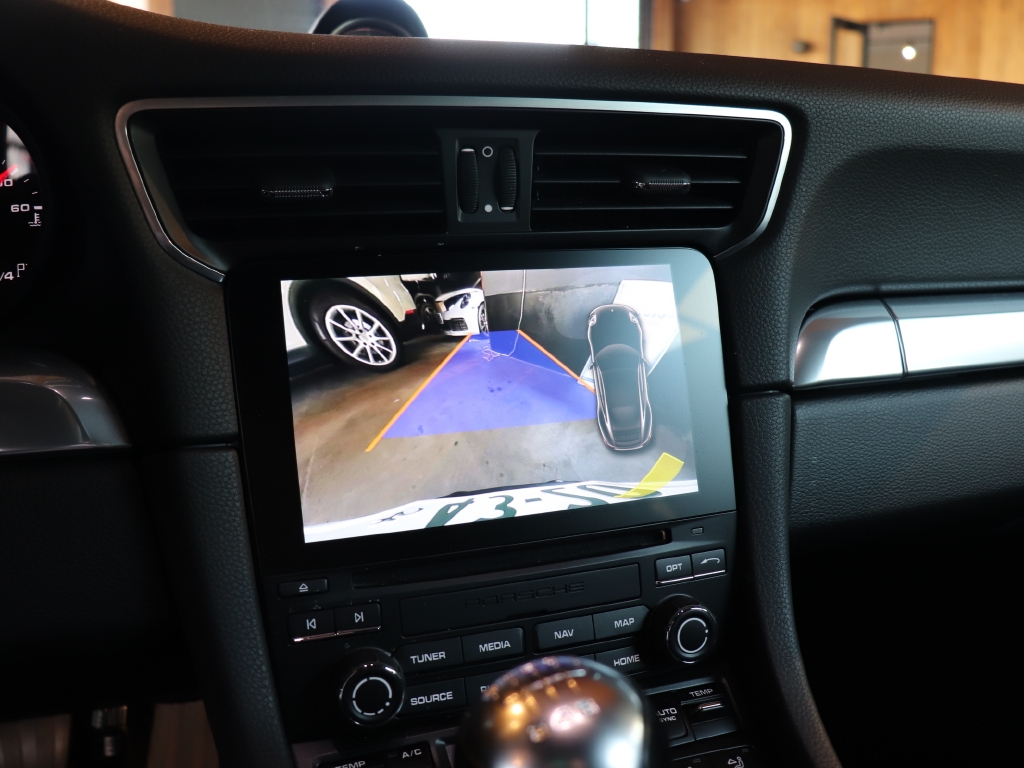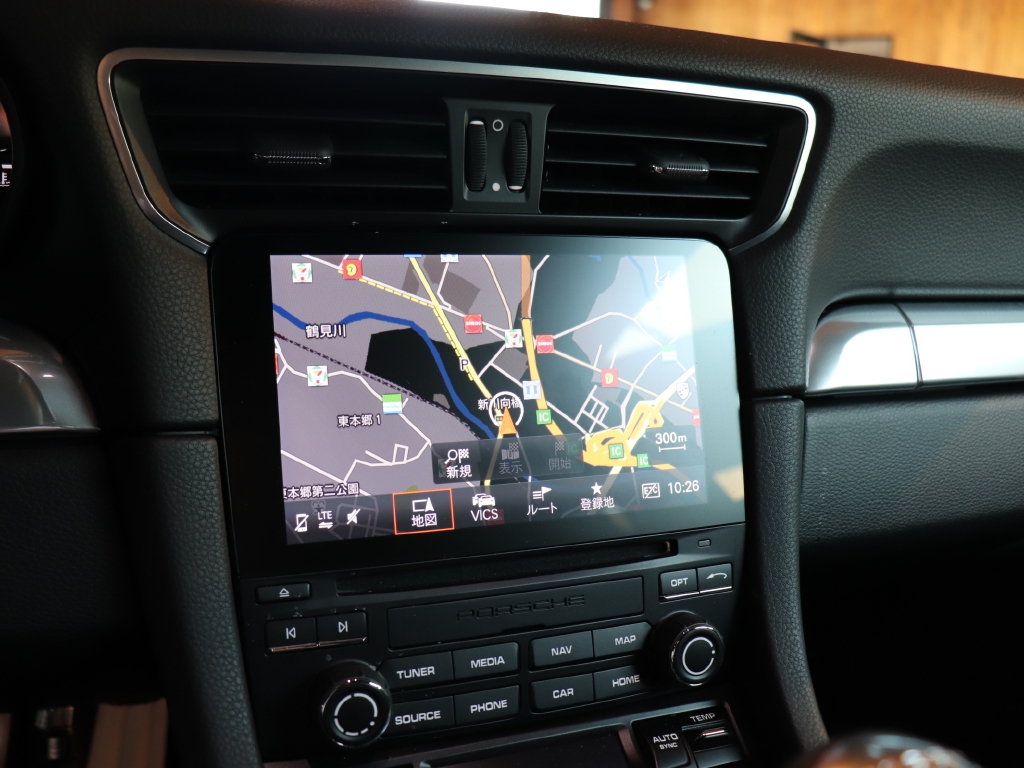 スポーツクロノパッケージ、GTスポーツステアリング、ステアリングヒーター、パワーステアリングプラス、ブラックレザーシート、ポルシェクレストエンボス加工ヘッドレスト、シートヒーター、純正ナビゲーション、ETC、バックカメラ、コーナーセンサー、ドライブレコーダー、レーダー探知機、電動可倒式ドアミラーと装備も充実。